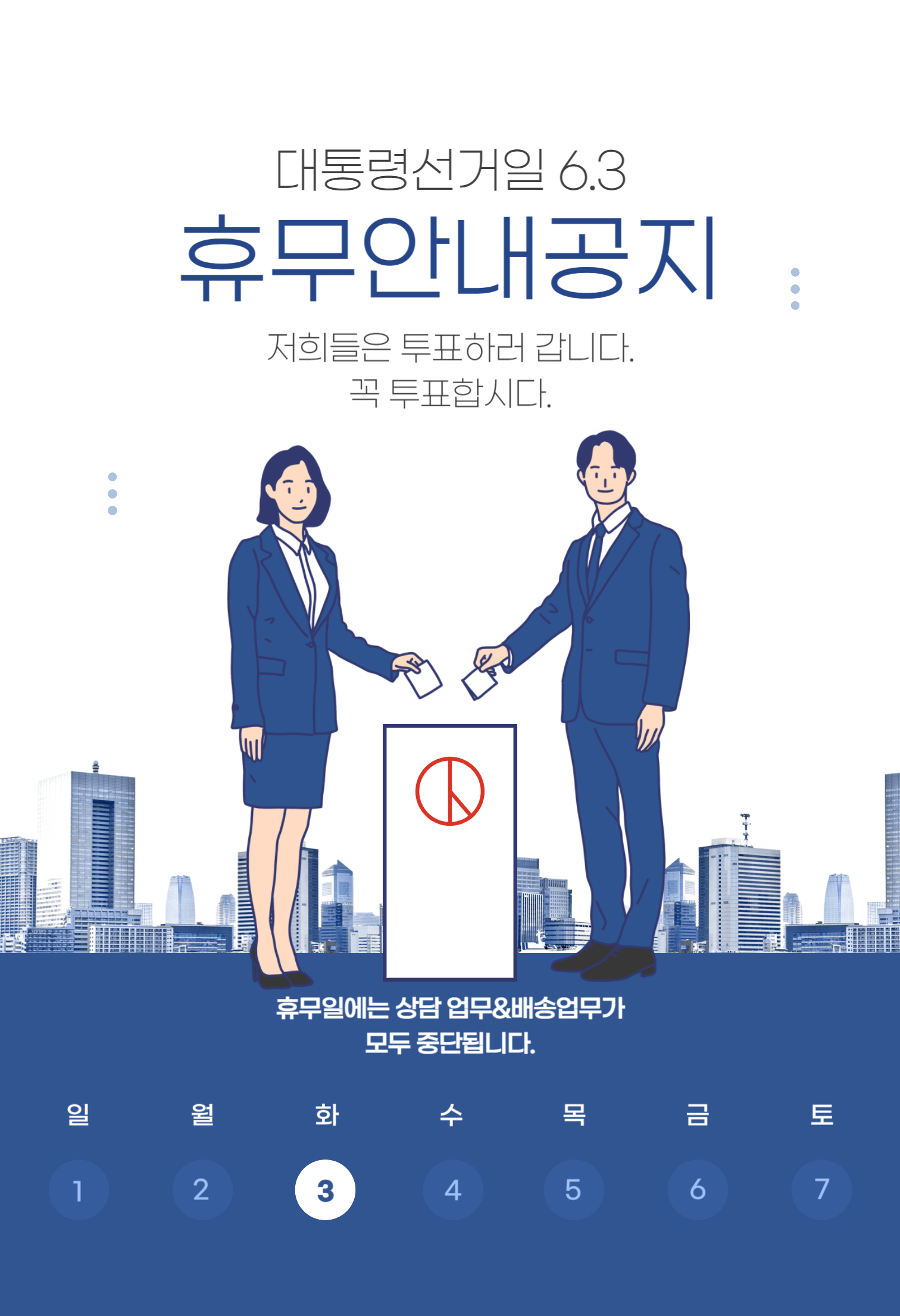 대통령선거일 6월3일 휴무안내공지
